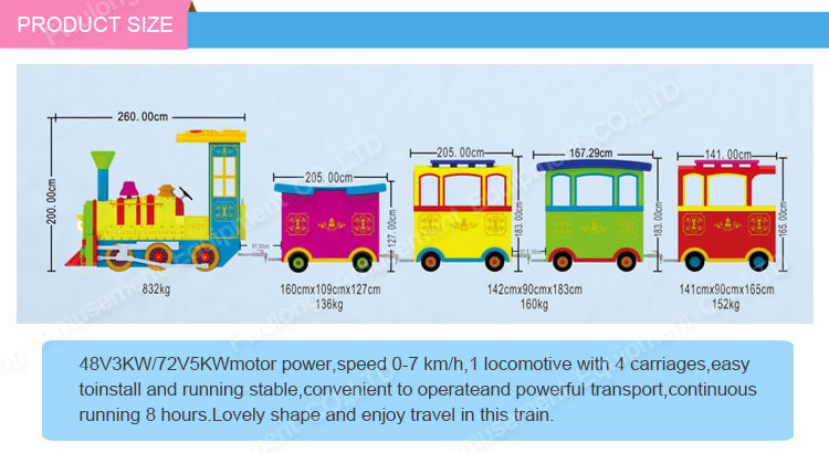 What presents you is the miniature train. With 3 KW motor in the locomotive, the train is able to run in different occasions and has widely use. It must be a convenient and environmental vehicle what you need.